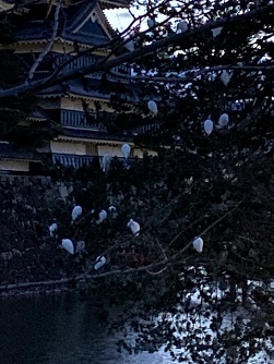 こんにちは! ひまわり不動産の増澤です それにしても 今朝は寒かった~ しかも朝陽が昇るのが遅い 朝ウォーキングは まだ薄暗い時間帯 いつものコース 松本城もこの通りお堀にせり出す枝の先 分かりますか?