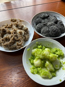 ゴマ和え、クルミ和え、大根おろし和え どれもこれも美味しいの~ つきたてお餅を食べるのは 餅つきの醍醐味だもの もち米はお義父さんお義母さんの 手作り安曇野産 ゴマもクルミも大根も 全部手作りしたものばかり わあ~これぞ地産地消 美味しく楽しく 餅つき終了~ 今年もありがとうございました! ひまわり不動産株式会社 増澤京子