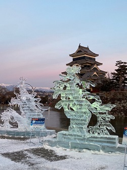 暖かい支度をして 冬のお散歩いかがですか? 芸術品が融けないうちに 松本城へレッツゴー! ひまわり不動産株式会社 増澤京子