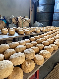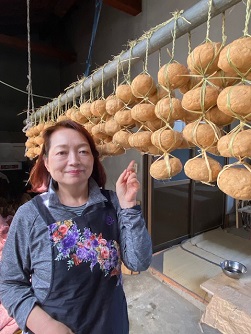 大豆のおまんじゅうが 出来上がり~ コレをワラで編んで 吊るしていきます