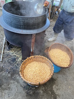 こんにちは! ひまわり不動産の増澤です この季節のイベント と言えば・・・ 安曇野の旦那さんの 実家での味噌作り~ 早朝からお義父さんは 大きな年代物の釜で 大量の大豆を炊きますもちろん大豆は安曇野産 じっくり炊いた大豆は 甘くて美味しいの~ で、その大豆を これまた年代物の機械で 潰していきます