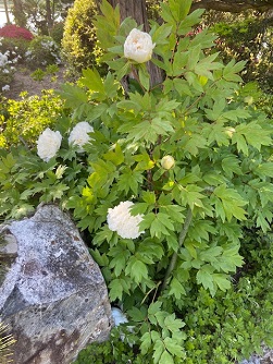 こんにちは! ひまわり不動産の増澤です 新緑の季節です アチラコチラのお庭も お花が咲き始めています 旦那さんの実家でも お庭が賑やかに なってきました~ その中でも 一層目を引くのがコチラ『小笠原ボタン』 殿様の白ボタンとして 松本城内にも 咲いているそうな