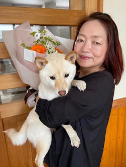 こんにちは! ひまわり不動産の増澤です 昨日は私のお誕生日でした 『いくつになったの?』 って聞かれても 『アレ、いくつだったっけ?』 と言う始末。。 とは言っても 旦那さんからプレゼント 頂きました~オレンジを基調とした 可愛くて元気な花束です 愛犬の豆柴 『さくらちゃん』と 一緒にパチリ 白い花瓶に入れて 玄関先に飾りました~ ビタミンカラーで 朝から元気貰って お仕事してます! ひまわり不動産株式会社 増澤京子