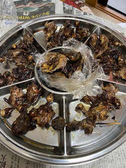 こんにちは! ひまわり不動産の増澤です テイクアウト用のパックに入った さて、コレは何でしょうか?『スズメ』です ダメな方はごめんなさい。。 安曇野のお義父さんから 届きました~ お義父さんが冬の間に獲って 冷凍してたもの もちろん許可を得て 獲っています 特性のタレに付けて 炭火で焼いてあるから 絶品のジビエです 実家の父が大好きで 私も子供の頃から 一緒に食べてました 父は若い頃 狩猟をした時があって スズメ獲ってたんです 手間の掛かったジビエ 大事にいただきます! ひまわり不動産株式会社 増澤京子