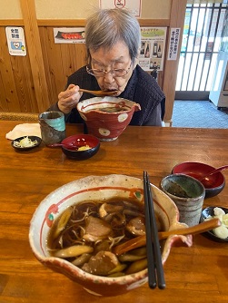 カテゴリー: 日記 | 美味しいものこんにちは! ひまわり不動産の増澤です 水曜日が定休日の ひまわり不動産です で、今日の定休日は 母とお出掛け~ 車イスの母を押して 松本城近くの お蕎麦屋さんへ好物の鴨南蛮をチョイス 一緒に食べました~ 鴨のだしが効いていて 美味しかったあ 母と食べる鴨南蛮 どんなご馳走より 一番美味しい! 幸せな時間に 感謝&感謝~ ひまわり不動産株式会社 増澤京子