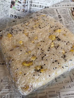 こんにちは! ひまわり不動産の増澤です 秋のお楽しみが やってきた~お義母さん特製 栗おこわです まだ炊き立てて温か~い 日本一美味しいと思ってる この栗おこわ もち米は安曇野で自家栽培 しかもはざかけしたもち米!