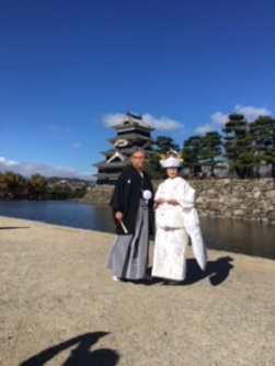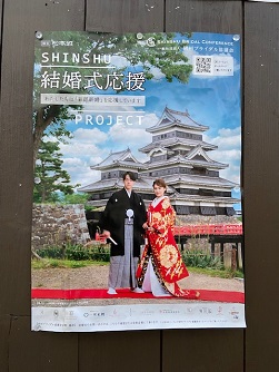 こんにちは! ひまわり不動産の増澤です 街中でこんなポスター 見つけました~ブライダル業界で 松本城をお借りしての 結婚式のご提案みたい 松本城と花嫁さんって ピッタリよね~ コロナの影響で 結婚式を挙げられなかった カップルは多かった事でしょう 結婚式って 家族の大切で晴れやかな 行事だもの ブライダル業界 ファイト~ ちなみに・・・ 4年前に結婚した 私達夫婦&松本城~