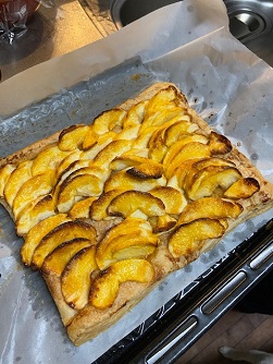 こんにちは! ひまわり不動産の増澤です スイーツ男子?オジサン? の旦那さんがアップルパイを 焼いてくれました~いつもは紅玉リンゴを 煮て包むけど 私のリクエストで カットした生の紅玉を 乗せて貰いました~