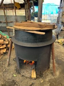 この釜で大豆を蒸します