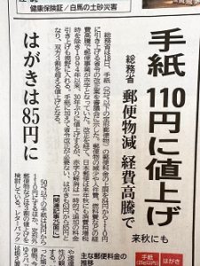 郵便料金の値上げ。