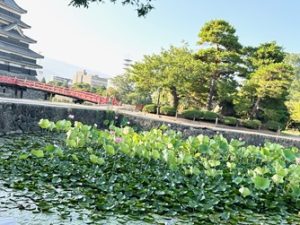 この時期、松本城のお堀に咲く