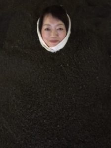 鹿児島の指宿(いぶすき)は 砂蒸し風呂で有名な温泉地 旦那さんと一緒に 砂に埋もれてきました温泉の熱で砂浜の砂が熱せられる仕組み 300年もの歴史があるらしい 素っ裸に浴衣を着ていざ出陣 海辺の浜で波の音が心地いい~ スコップを持った砂掛け係さんが 慣れた手つきで砂を掛けてくれます