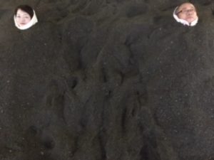 闇夜のお化けみたい。。 ずっしり砂の重さを感じながら じわじわ温まる心地よさ