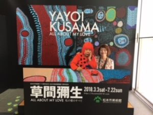 水曜日は定休日の ひまわり不動産です 今日は松本市美術館で開催中の 草間彌生『私の愛のすべて』 へ行ってきました館内はどこもかしこも 草間ワールド全開