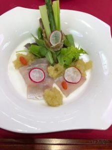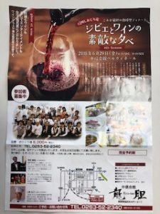 何とも信州的なイベント 『ジビエとワインの素敵な夕べ』 に参加してきましたお料理もワインも ワイングラスもお箸も 全て塩尻産! カルパッチョの素材は ナント『岩魚』