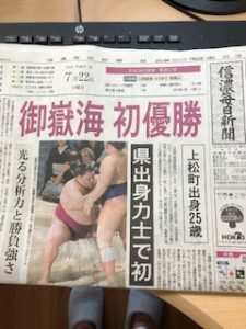 毎日が猛暑のなか開催中の 大相撲の名古屋場所 長野県は木曽郡上松町出身 『関脇 御嶽海』が 優勝しました!!!おめでとう! 信州の誇りです! 3横綱と新大関が休場という 波乱な場所ではありましたが 立派!立派! インタビューに応える御嶽海関 あふれる涙と感謝の言葉に 御嶽海関の人柄が出てましたね~ テレビの無い我が家 ライブでは難しいけど 夜にアベマTVで観てました さて、今夜の優勝インタビュー 今からワクワクしてます ひまわり不動産株式会社 増澤京子(旧姓:小林)