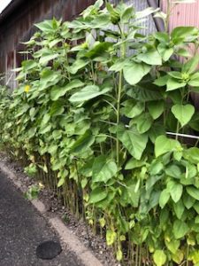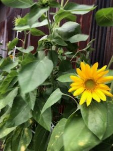 一番元気なのはこの子達 看板下のわずかな土に植えたひまわり つぼみが日に日に 大きくなってます