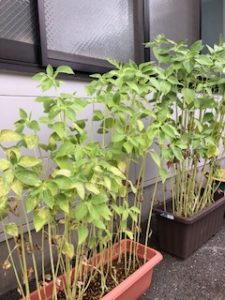 プランターにひまわりは 栄養不足かな ヒョロヒョロです