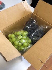 カテゴリー: 日記山梨から叔父と叔母が 実家に本場山梨のぶどうを 持って来てくれました 私へもという事で お店に寄ってもらったのですが まあ沢山の 手土産持参で ぶどうの箱を開けると 大きなシャインマスカット&巨峰お店に置くようにって 観葉植物も