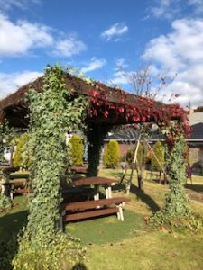 今日のランチは移動中に 並柳の『スイート』へ松本では老舗のパン屋さん 週末とあって店内は混み混み で、お天気も良かったので 隣接しているお庭で食べました