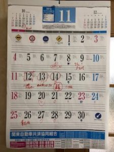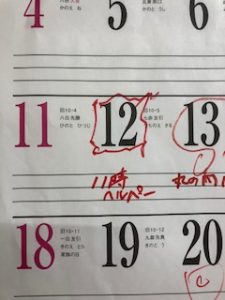 今月の実家のカレンダー 父と母が予定を忘れないように 色々書かれています今日は11月12日