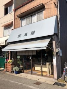 売家のご案内の帰り道 お餅屋さんに寄りましたレトロと言うのか 渋いと言うのか 今では貴重なお餅屋さん 『宝来屋餅店』 お団子、大福、切り餅等々 どれも美味しそう~ 悩んで選んだのは 『豆大福』と『ゴマのおはぎ』