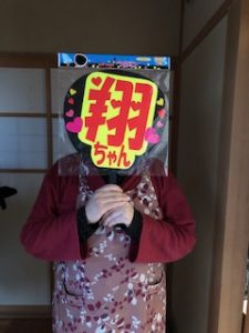 私の妹は子供の頃から アイドルが大好き 秀樹(西城秀樹) トシちゃん(田原俊彦) 色々色々~の 今は嵐! 来月、嵐のチケットが買えて コンサートに行くらしい 私の妹なのでオバちゃんです 一緒に行くお友達もネ で、この通り↓『翔ちゃん』のファンなんだ 私も顔くらい知ってる