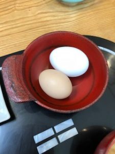 カテゴリー: 日記 | 美味しいもの今朝の朝ごはんは 『卵かけごはん』 お世話になっている地鶏の先生から 貴重な地鶏の卵を貰ったので 白くて大きいのが、いつもの卵 茶色くて小さいのが、地鶏の卵割ろうとしたら殻が固い つまようじ刺してみたら立ったヨ