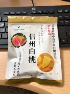 千葉に住む親戚から 電話がありました ツルヤさんオリジナルの ドライフルーツを 送ってほしいとの事 通っている美容院で頂いた ドライフルーツが とっても美味しかったそうで それが信州のスーパーツルヤさんの オリジナルらしい リクエストは、・パイナップル・いちじく ・レモン・桃・オレンジ・リンゴ等々 ツルヤさんへはよく行くけど ドライフルーツが置いてある棚には 初めて見る商品ばかり 私も買ってみました 取り合えず『信州白桃』思ったより柔らかくてジューシー うん、確かに美味しい!