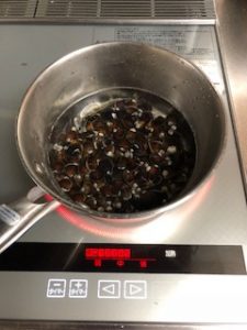 『早寝・早起き・朝ごはん』 朝ごはんに一杯のお味噌汁は 欠かせません お味噌は旦那さんの実家で 毎年作っている手作り味噌 私もお手伝いしてま~す で、だしは煮干し 夜に水を張ったお鍋に一匹ポン はらわたを取って入れておくだけ銀色に輝く煮干し 見るからに美味しそう