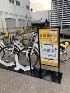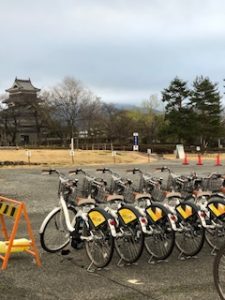 朝のウォーキングで 見慣れない物を発見! 松本城近くの公園で 真新しい自転車が多数何だろう~と思っていたら 本町の『メディアガーデン』でも 同じ黄色い自転車が!