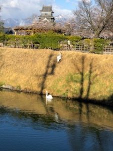 カテゴリー: 地域情報 | 日記朝のウォーキングコースに 国宝松本城のお堀は定番です 桜の開花状況をチェックしつつ 何となく白鳥を眼で追ってしまいます 今日は珍しい白鳥の姿を激写 のっしのっしと丘を登る白鳥時にはサギに向かって威嚇したり 仲良く泳いでいたり なかなか楽しいです 『国宝松本城・夜桜会』が開催中で 夜な夜な大勢の来場者に きっとお疲れ気味な事でしょう ひまわり不動産(株) 増澤京子