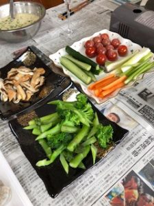 水曜日は定休日の ひまわり不動産です 天気予報は雨・・・ こんな日はお家でまったりが一番 最近我が家で流行ってる 『たこ焼きとスパークリングワイン』 昼飲みしちゃいました~ 野菜はタップリ摂らないとね スティック野菜は 味噌マヨネーズでジャーン! メインはたこ焼き で、空いた穴で オイルフォンデュ &チーズフォンデュ &ミニステーキまで
