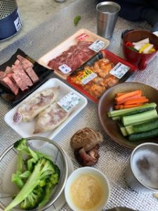 5月4日『みどりの日』 連休が続いてます 今日の予定は 『バーベキュー』in大手 自宅のひさしの下が ちょうど良いんです仲間達とのバーベキューも良いけど 旦那さんと2人のバーベキューも なかなか楽しい~ お肉はもちろん 牛ホルモンと豚足が メチャ美味しかったー!