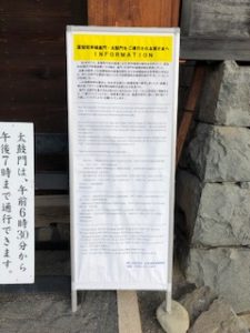 昨夜9時に寝たら 今朝5時前に 目が冷めちゃった。。 で、いつものコースで 朝ウォーキング 松本城のお堀を回って 源智の井戸へ向かいます 太鼓門を通過しながら そう言えば新聞に載ってたな~ と思いつつ近づいてみると・・・ああ、書いてある 日本語をはじめ、英語、中国語、韓国語 外国人観光客多いものね~