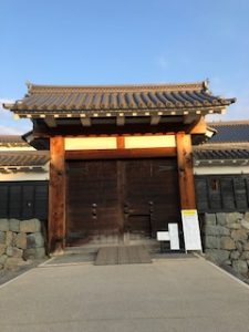 松本城の太鼓門にて。
