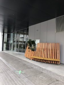 朝のウォーキングは 毎日ちょこっとだけ コースを変えてます 今朝は信毎メディアガーデンの わき道を通ってみましたあれ? こんな所にベンチが・・・