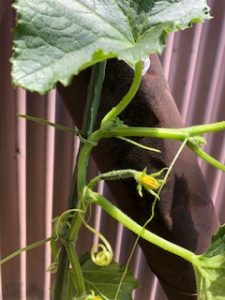 赤ちゃんキュウリを発見! 成長の速さに驚くじゃない 食卓に上るのはいつになるかな~ 何だか楽しみになってきた ひまわり不動産(株) 増澤京子