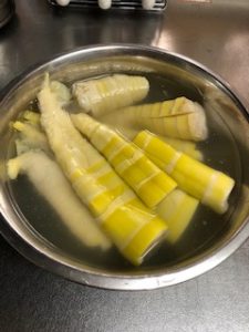 お義母さんから電話で 『京子さん、タケノコいる~?』 『いるー!』ふたつ返事で 安曇野の旦那さんの実家へ飯田で採ってきた『淡竹(ハチク)』は それはそれは立派 あく抜きをしたばかりで まだ暖かい状態 ここまでするのが 大変なのよね~