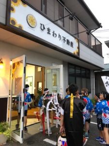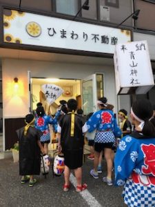 昨夜は、城下町・松本で お盆に行われる子供の行事 『青山様』と『ぼんぼん』が ひまわり不動産に来てくれました!法被を着た男の子たちが (女の子も混ざっていたような) お神輿を担いで町内を練り歩きます