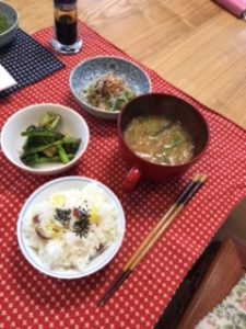 カテゴリー: 美味しいもの『早寝・早起き・朝ごはん』を 心掛けてます が、夜明けが遅く 冷え込むようになったこの頃 早起きが厳しくなってきた。。 でも、朝ごはんを美味しく頂ける 生活のリズムが理想 混ぜご飯って何だか好き サツマイモを一緒に炊いてカブの葉っぱを塩もみして