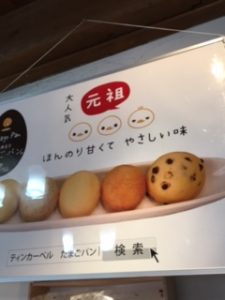 カテゴリー: 美味しいもの先日、千葉から来られた叔父さんが 『お土産にたまごパン買ってくわ』って たまごパン??? 豊科の『ティンカーベル』で 販売してるお菓子らしいんだけど 全く知らなんだあ お店に入ると確かにたまごパンだらけいろんな種類があって