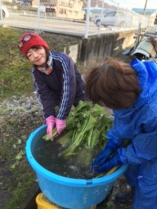 帰ってきて湧き水でお菜洗い開始~