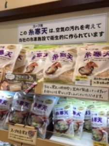 先日の定休日はいちご狩りへ 帰りに寄り道したのは 『かんてんぱぱ』ガーデン 知る人ぞ知る伊那食品の 寒天の専門ショップ海の無い信州に寒天の専門店 寒天の原料は海藻だから チョット不思議 食物繊維は 大切だからね~ 毎日お世話になってるのがコレ 寒天が糸状になってる糸寒天