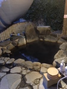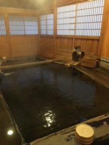 手前から奥に行くほど深くなっていて 最大で150センチの深さ 立って入る温泉って新鮮~ 次は半露天の石湯