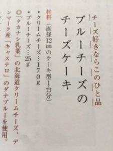 美容院には色々な雑誌があって 何を読もうか悩むけど 定番はコレ『暮らしの手帖』で、目に留まったのがこのページ 『チーズを味わうチーズケーキ』