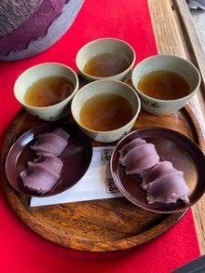 お茶はお番茶なんですね~ 出来立ての赤福のお味は・・・ 美味しいー!