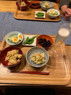 家でのご飯は 朝も夜もほぼ和食 例えばこんな感じ↓ おからの煮物 ポテトサラダ アボガドとエビのサラダ 煮豆野菜多めで身体には 良さそうなんだけど どうも食べ過ぎの傾向が。。 で、豆好きな私~ (玄米ご飯に大豆を入れて炊くと 美味しいんだけど 旦那さんがイヤだって。。) で、この煮豆 美味しいの~