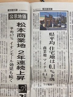 今年の公示地価が 発表されました公示地価とは・・・ 一般の土地の取引価格に対して 指標となる事が目的なので 購入の際には参考となります で、今年の松本市の住宅地は・・・ プラス0.9%で4年連続の上昇です! 最高価格は『開智小学校南西』 やっぱり人気のエリアです 『イオンモール』周辺の上昇率も 高くなりました イオンモール効果ですね バブル崩壊後土地価格は ひたすら下がり続けましたが やっと光が見えてきました~ しかしながら値下がりが 止まらない地域もあり 二極化は避けられません これから少子高齢化は 一層進んでいくでしょう 土地の購入をご検討されている方は 自分が良ければ良いのではなく 安ければ良いのでもなく 利便性が高く今後も需要が見込める 場所を選んで頂きたいと思います そうは言ってもそういった場所は あまり売地も無いしあっても高い。。 無理のない資金計画で バランスが取れた購入が大切です 始めて土地を買う場合 何から手を付けたら良いのか 注意すべき点は何なのか 地元密着のひまわり不動産に どうぞお気軽にご相談ください ひまわり不動産(株) 増澤京子