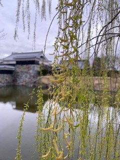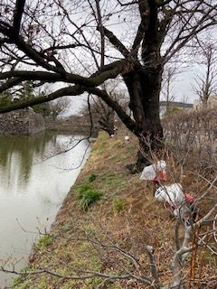 雨が上がってたから 今朝も元気にウォーキング~ 松本城のお堀で毎年恒例 嬉しい看板を見つけました!夜桜を楽しめる ライトアップのお知らせ お堀に添って照明器具が 設置されてました